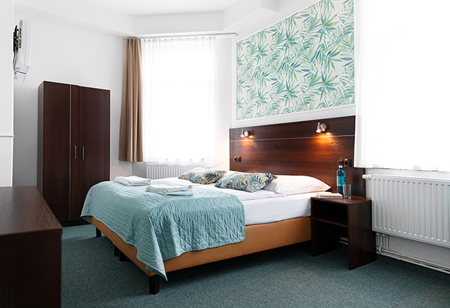 Nasze nowoczesne oraz wygodne pokoje zostały świeżo odnowione pod koniec 2017 roku. Oferujemy pokoje jedno i dwuosobowe oraz pokoje z dwoma lub czterema osobnymi łóżkami w Hotelu Polonia. Wszystkie pokoje są ogrzewane i wyposażone w bezpłatny bezprzewodowy dostęp do Internetu, telewizor oraz łazienkę z prysznicem i suszarką do włosów. Nasze apartamenty są również wyposażone we własną kuchnię złożoną z lodówki, kuchenki, naczyń i kotła wodnego.